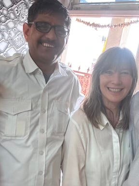 I asked how many rooms, and was given a tour. There was a large kitchen area and two other bedrooms. One had the Hindu shrine, with all the gods and goddesses. Hindus can pick which ones they want to focus their worship on, I guess Mukesh couldn’t decide, or wants to cover all the bets. I asked him and his son to show me what to do in front of the shrine, so we all sat cross-legged, put our hands together, and meditated and thought and asked the Gods whatever each of us was wanting bestowed. I told them a bit later that I thought Sarasvati had been good to me, which went over really well. Sarasvati is the Hindu goddess of arts, music, intelligence and wisdom.